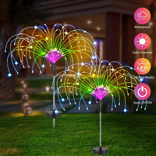 Outdoor Solar Garden Lights 120 Led Solar Powered Decorative Stake Landscape Light Diy Flowers Fireworks Starburst 2 Pack Warm White Walmart Com
